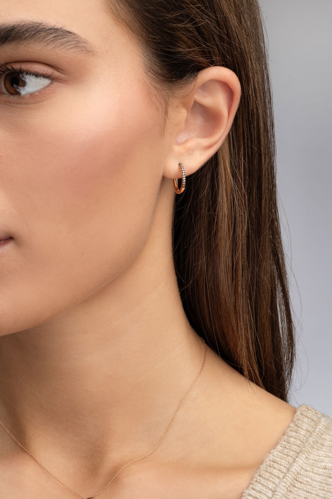 Κρίκοι Ροζ Χρυσοί 18 Καρατίων με Καφέ Διαμάντια