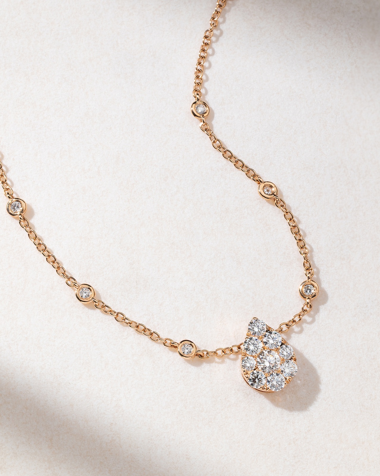 Κολιέ Ροζ Χρυσό Κ18 με Παντατίφ Δάκρυ και Μπριγιάν Διαμάντια