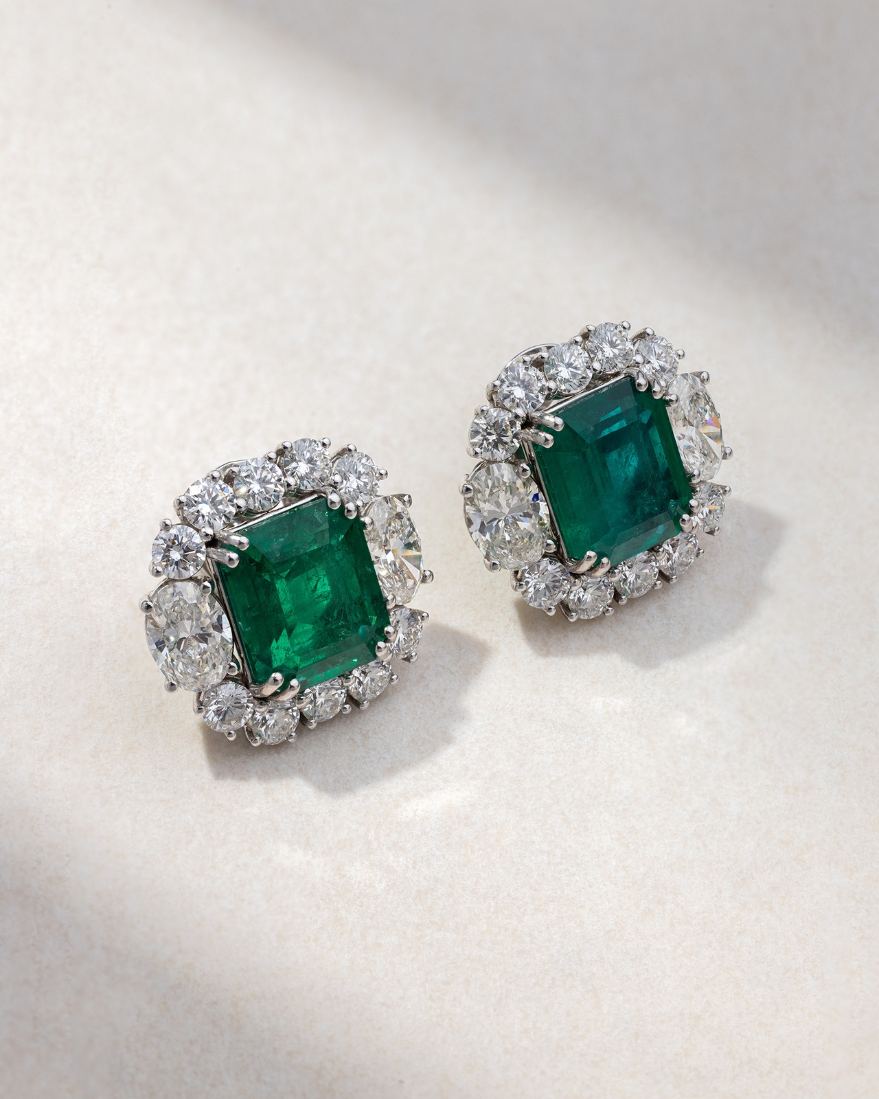 Σκουλαρίκια σε Λευκό Χρυσό Κ18 με Μπριγιάν, Oval Διαμάντια και Emeralds