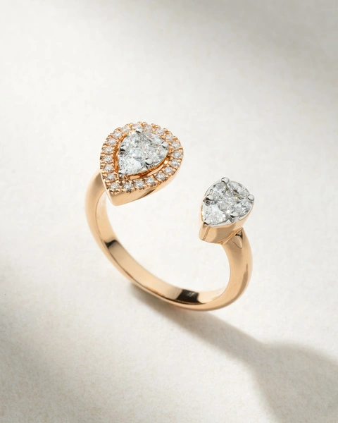 Δαχτυλίδι Ροζ Χρυσό Κ18 με Διαμαντένια Δάκρυα