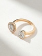 Αυτό το μοντέρνο ανοιχτό δαχτυλίδι είναι χειροποίητο από ροζ χρυσό 18 καρατίων με δύο ροζέτες από μπριγιάν, ναβέτες και princess διαμάντια.