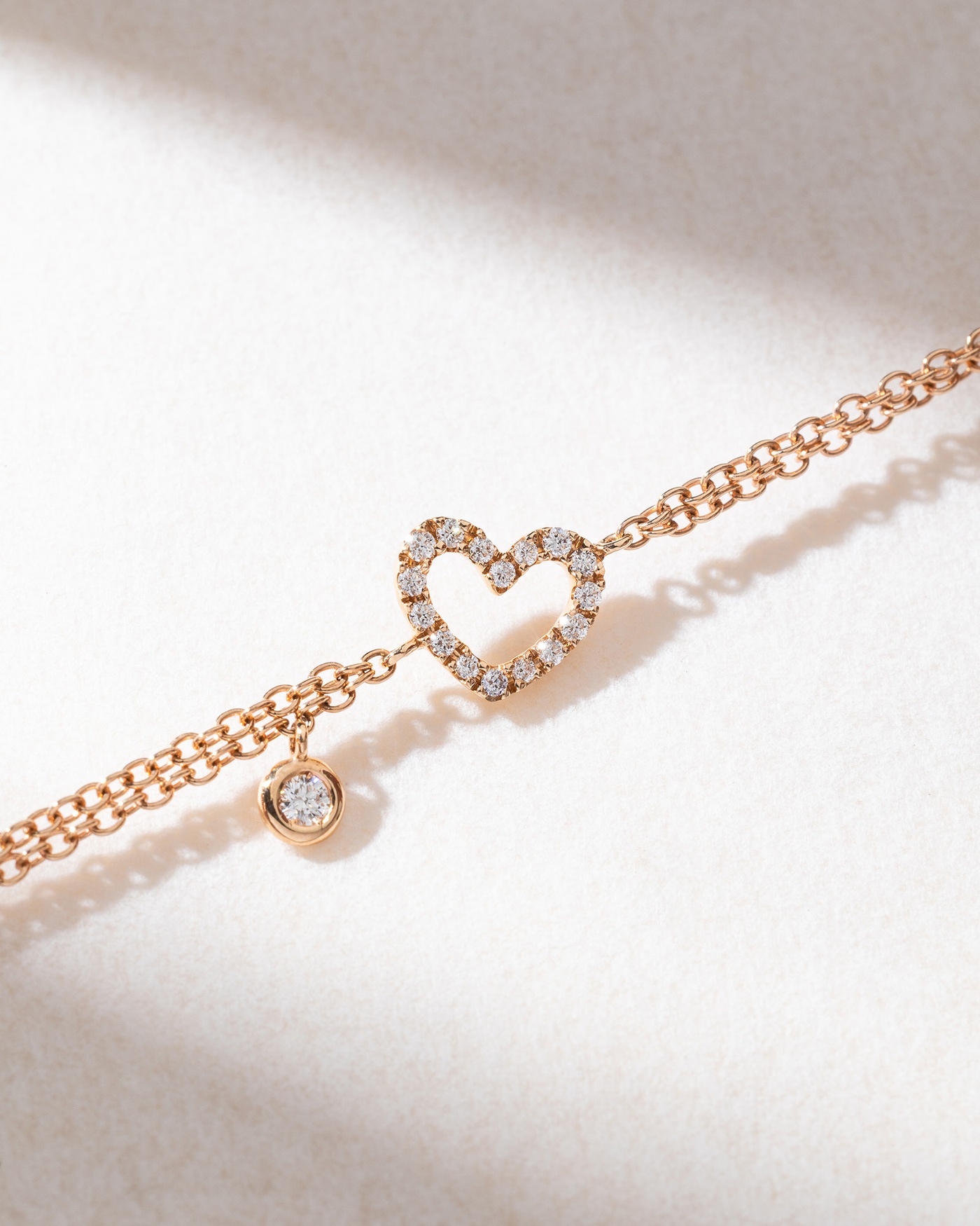 Βραχιόλι Ροζ Χρυσό Κ18 με Καρδιά και Διαμάντια