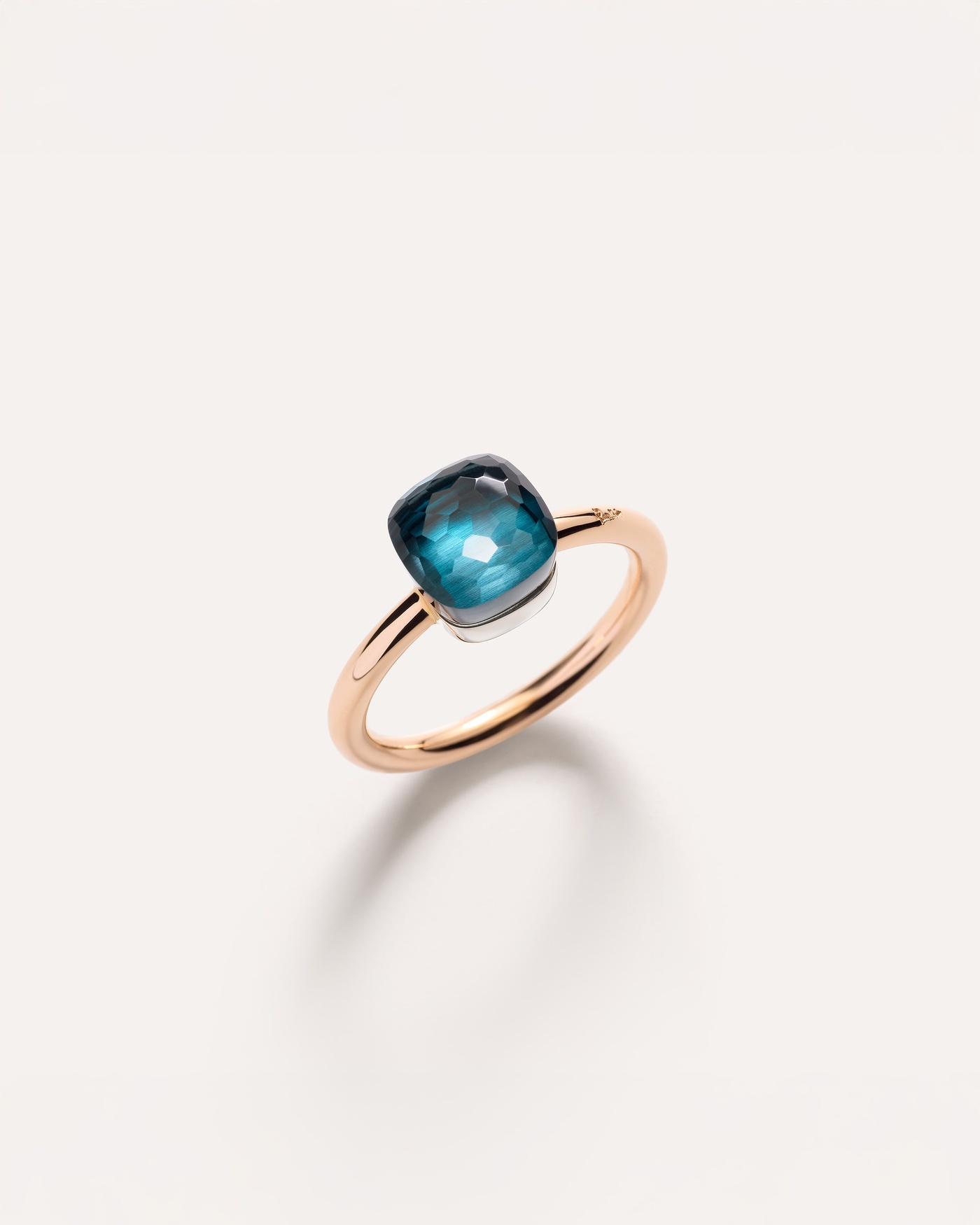 Δαχτυλίδι Petit Nudo σε Ροζ χρυσό και λευκόχρυσο Κ18 με London Μπλε τοπάζ