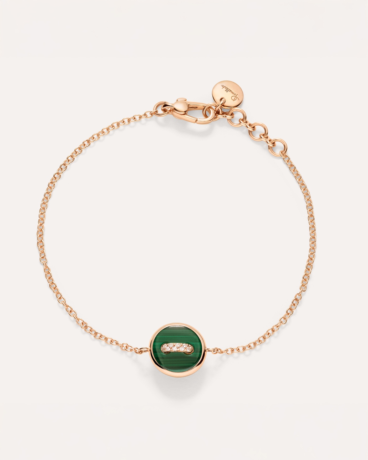 Βραχιόλι Pom Pom Dot σε ροζ χρυσό Κ18 με μαλαχίτη, λευκά διαμάντια και φίλντισι