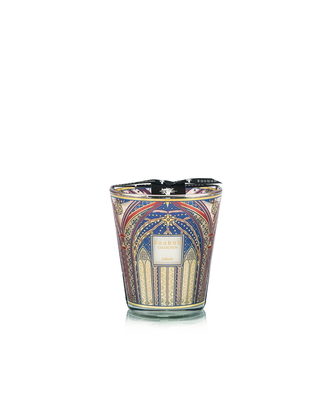 Το αρωματικό κερί Céleste κοσμείται με μία μεταξοτυπία σε βαθύ μπλε χρώμα και διακοσμητικές λεπτομέρειες από χρυσό 24 καρατίων, εμπνευσμένες από την αρχιτεκτονική του ουράνιου θόλου του Καθεδρικού Ναού της Κρακοβίας. Το σχέδιο αποτελεί μια ερμηνεία του κεντρικού κλίτους: με οροφή, βαμμένη σε μπλε φόντο και διάσπαρτα μικρά, χρυσά αστέρια. Το διακοσμητικό μοτίβο περιβάλλει το γυαλί σαν φανταστικές πύλες που ανοίγονται προς τον ουρανό. Η φλόγα ζωντανεύει το σκηνικό και υποβάλλει μια ονειρική διάθεση, οδηγώντας μας σε μια εσωτερική αναζήτηση πνευματικής σύνδεσης. Πιο βλάσφημο παρά θρησκευτικό, το αισθητικό ύφος αυτού του οσφρητικού δημιουργήματος μας οδηγεί σε ένα ταξίδι ανακάλυψης ενός αρώματος, του οποίου οι ξυλώδεις νότες λιβανιού προσκαλούν σε στοχασμό και εσωτερική περισυλλογή. Το κέδρινο ξύλο και το κεχριμπάρι προσδίδουν ένα άρωμα με μια θαυμαστή ξυλώδη ταυτότητα, ιδανική για τις χειμωνιάτικες βραδιές, όταν το φως της ημέρας λιγοστεύει.
