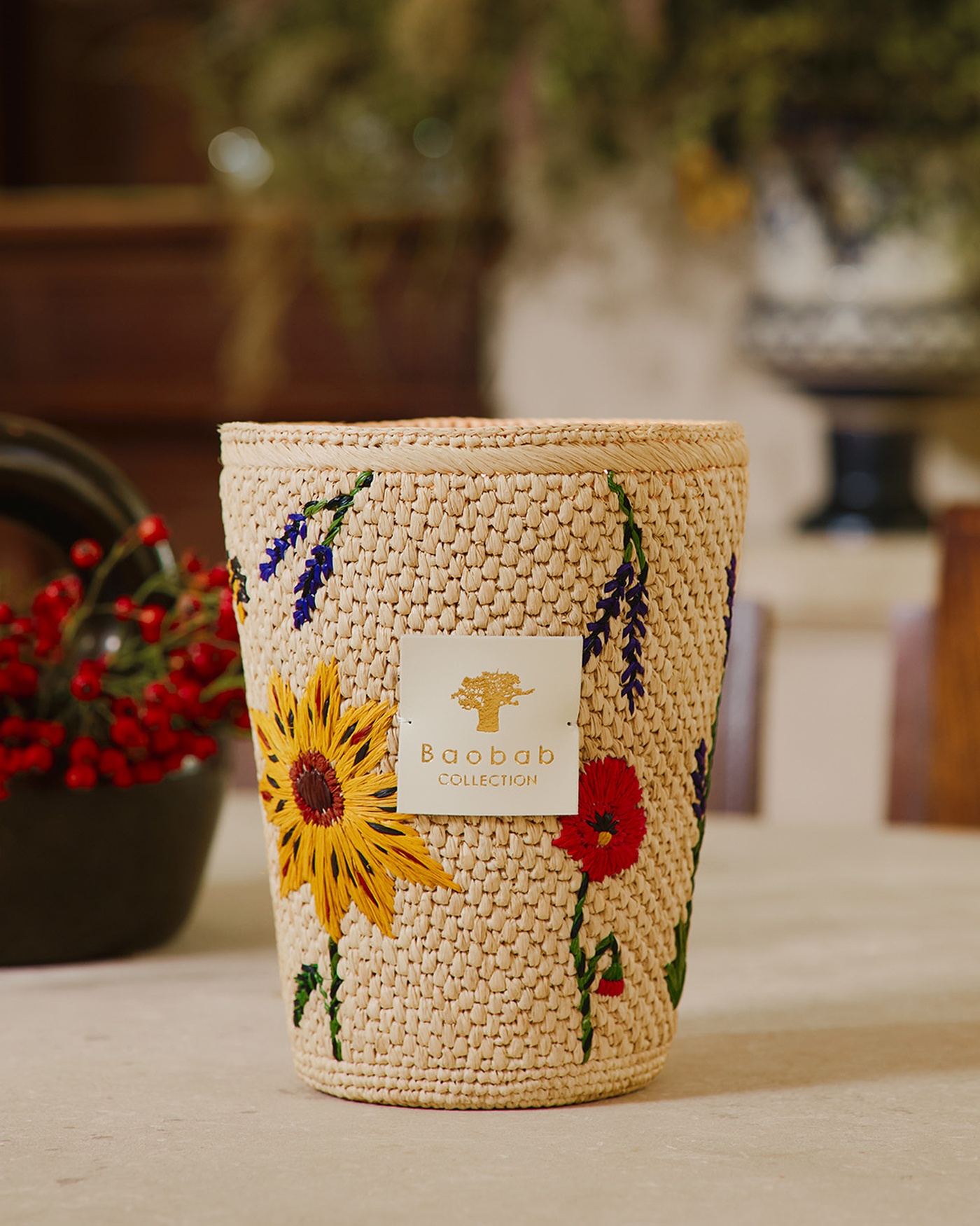 Το αρωματικό κερί Ahitra είναι χειροκεντημένο από τη γυναικεία συνεταιριστική κοινότητα της Μαδαγασκάρης και διακοσμημένο με φυσική ραφία και ζωντανά λουλούδια. Κάθε ραφή αποκαλύπτει ώρες αφοσίωσης, καθώς οι τεχνίτριες αποδίδουν με αυθορμητισμό την λεβάντα, τους ηλίανθους και τις παπαρούνες.