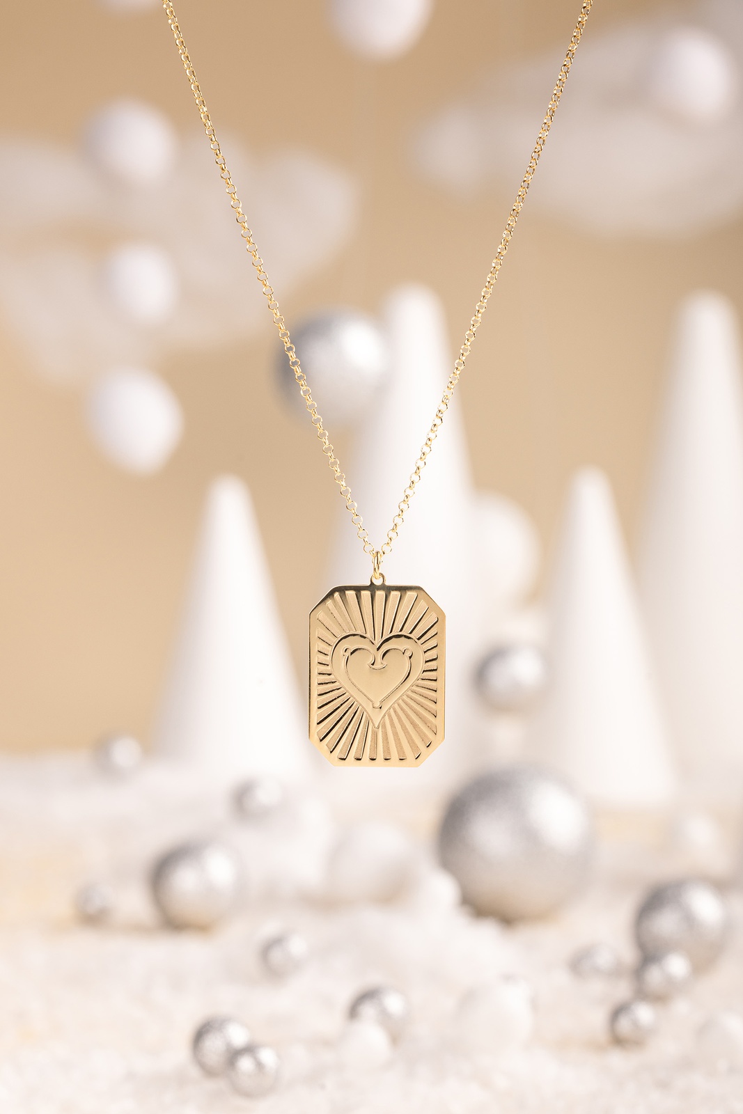 Ένα ξεχωριστό δώρο που θα δώσει χαρά σε κάποιο αγαπημένο σας πρόσωπο, αυτό το κολιέ έχει μία φίνα ακτινωτή καρδιά. Η αλυσίδα του έχει μοντέρνο σχέδιο και μία μικροσκοπική στρογγυλή πλακέτα με το 26 στο κούμπωμα.