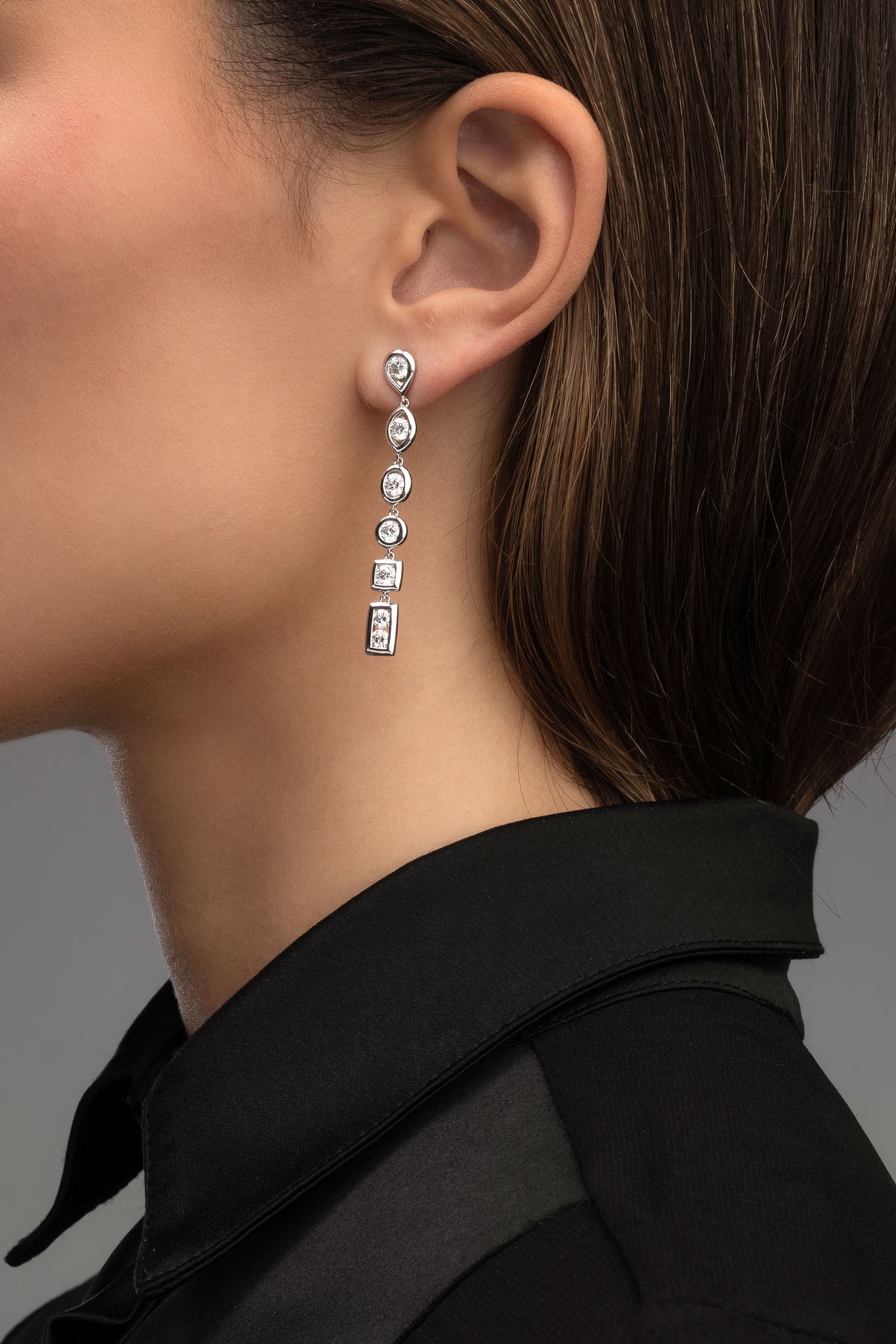 18K White Gold Long Earrings with Brilliants and Multiple shaped Diamond Settings
