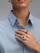 Crivelli’s sapphire eternity ring is crafted from 18K white gold and set with a row of 20 exquisite emerald cut blue sapphires. As all eternity bands , this ring shines from all angles and can become a classic yet modern anniversary ring with the impressive color and rear cut of its gemstones.