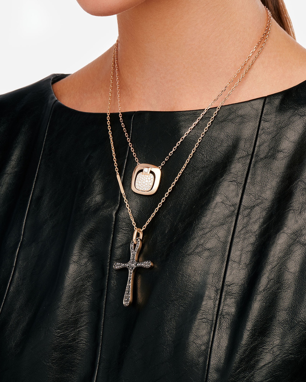 Distinctive cross in 18K rose gold, adorned with black brilliant-cut diamonds that deliver a striking sparkle. With an exceptional design and timeless elegance, it exudes high jewelry craftsmanship. Wear it alone or layered for a modern, chic look.