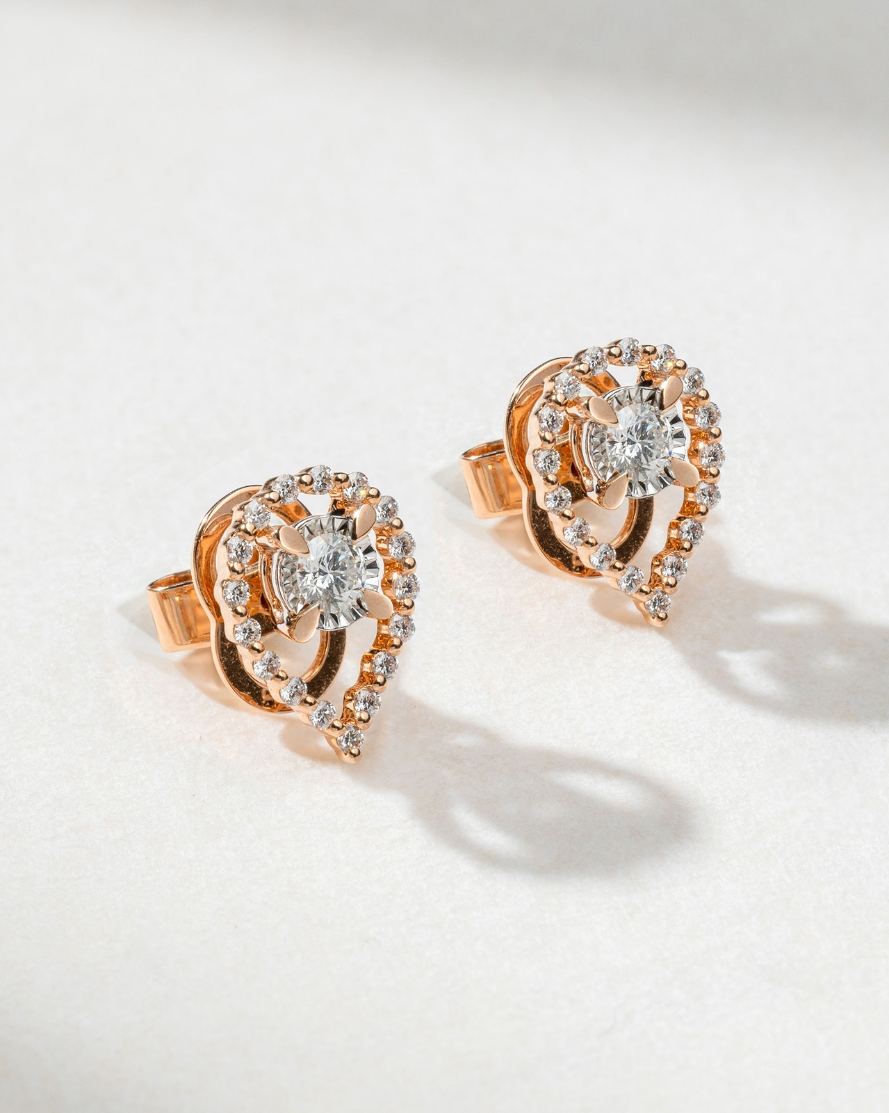 18K Rose Gold Earrings with Pear Shaped Outline and Diamonds
