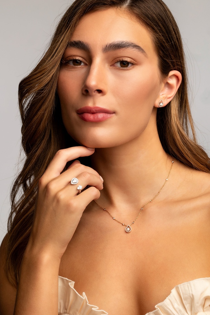 18K Rose Gold Necklace with a Pear Shaped Pendant and Brilliant Diamonds