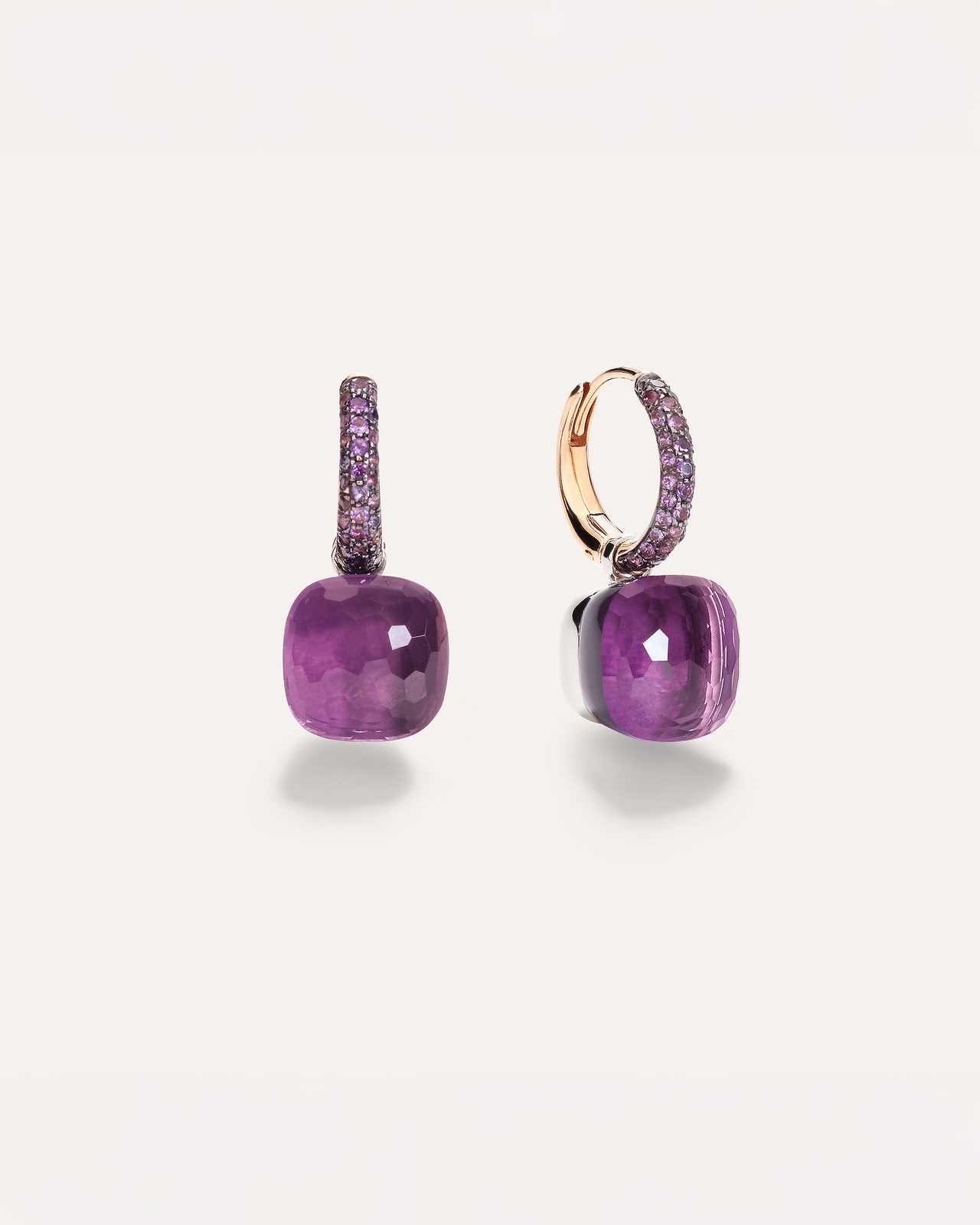 Nudo earrings in 18k rose and white gold with amethysts and jades