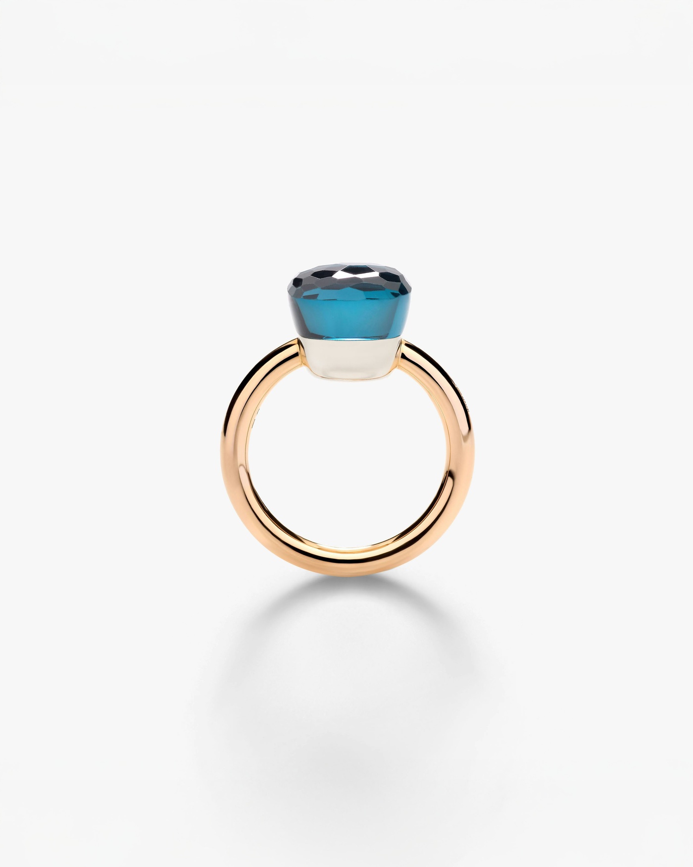 Nudo is quintessentially Pomellato and an iconic design of the house. With the revolutionary idea to free the gem from the bezel and present the naked splendor of the gem, every facet of Nudo’s gemstones evoke Pomellato’s playful spirit and Milanese colorful and understated elegance. This playful ring in a Classic size, that can be stacked and mixed-and-matched, features an eye-catching London blue topaz, creating a sleek and powerful look.