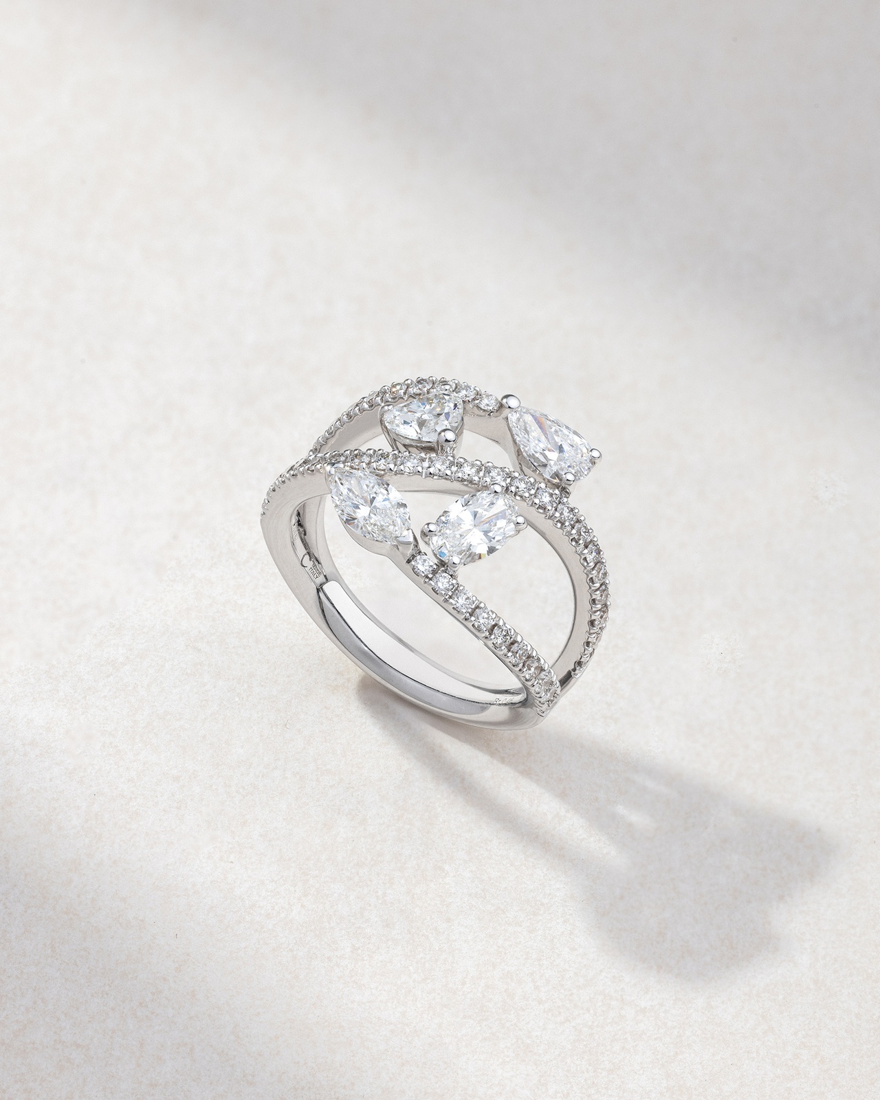 Ring in 18K White Gold with Brilliant Diamonds in Poir, Heart, Navette, and Oval Shapes