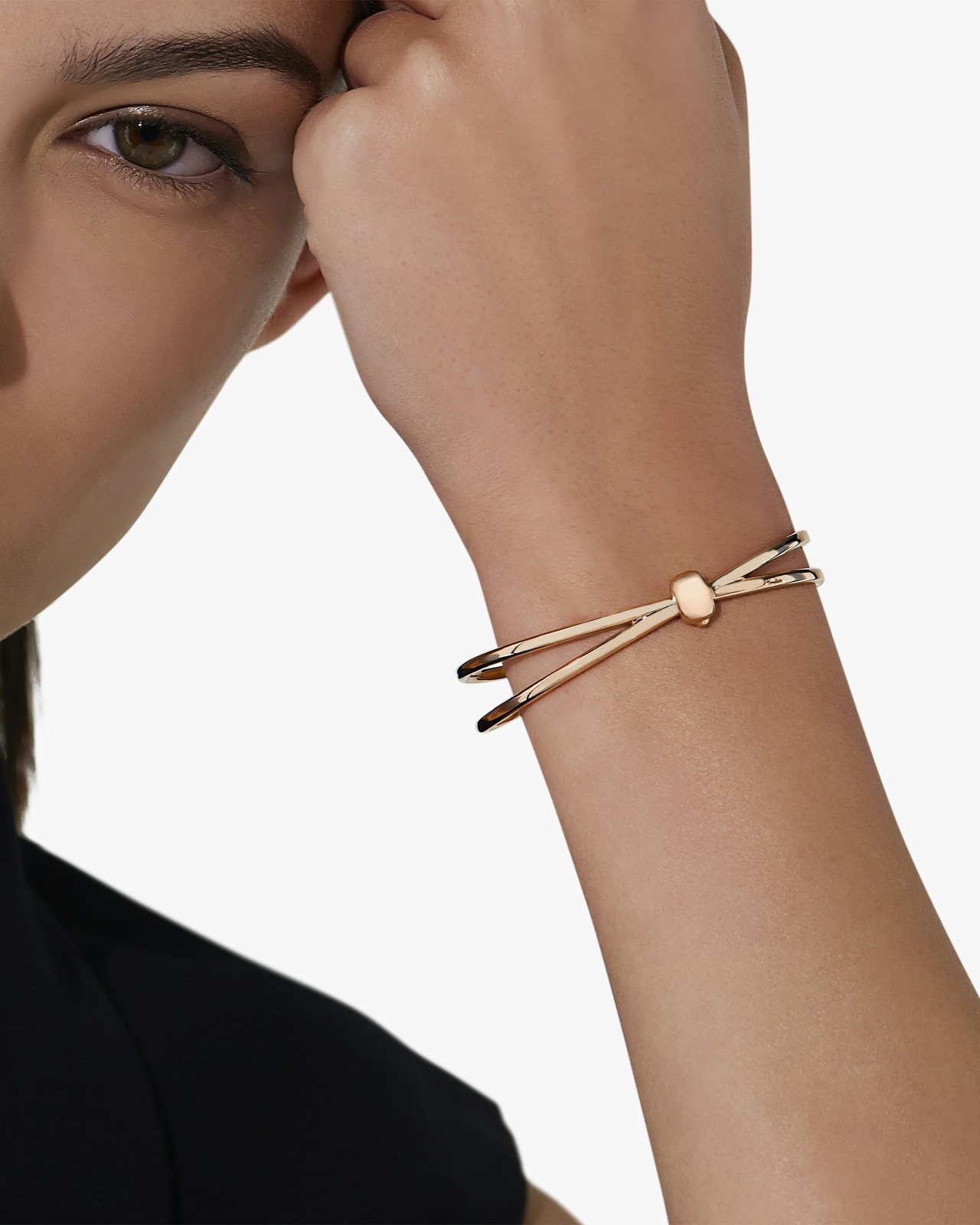 Deeply symbolic, the Pomellato Together collection captures the connections that bind us together, celebrating love in its many forms. The Pomellato Together jewels feature two ellipses held together by a link, symbolizing the power of unity and the strength of togertherness. This rose gold bracelet is the perfect Milanese tribute to love.