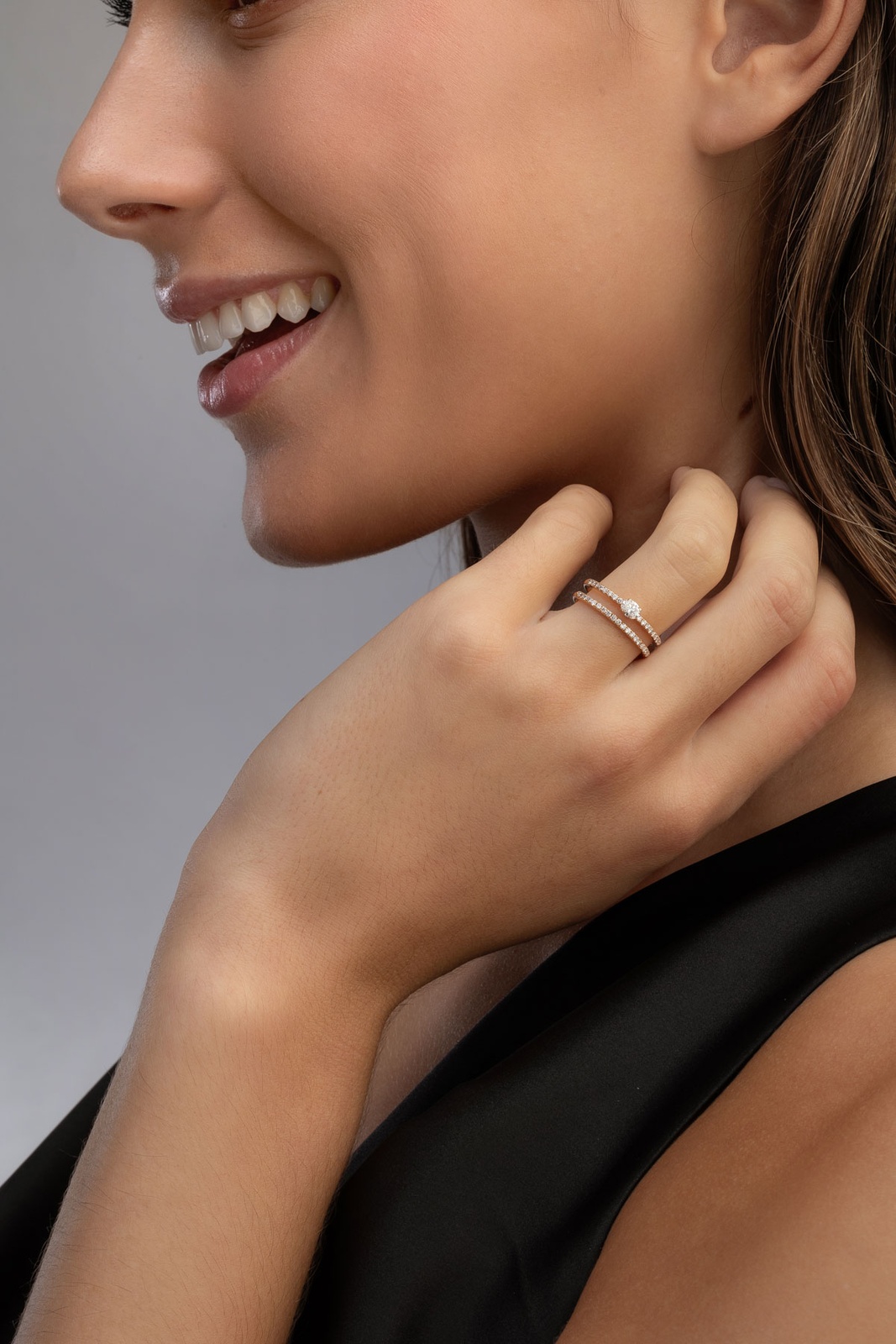 Διπλό Δαχτυλίδι Ροζ Χρυσό Κ18 με Μπριγιάν Διαμάντια