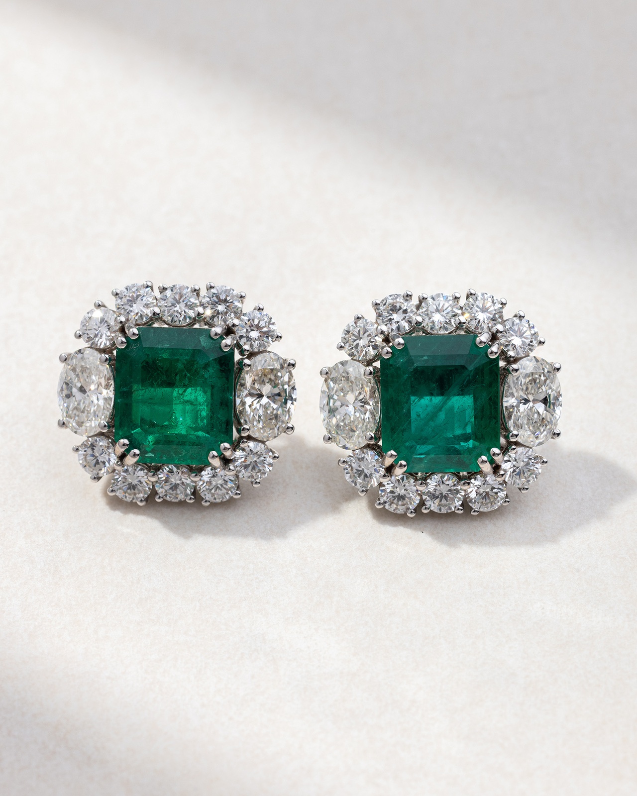 Σκουλαρίκια σε Λευκό Χρυσό Κ18 με Μπριγιάν, Oval Διαμάντια και Emeralds