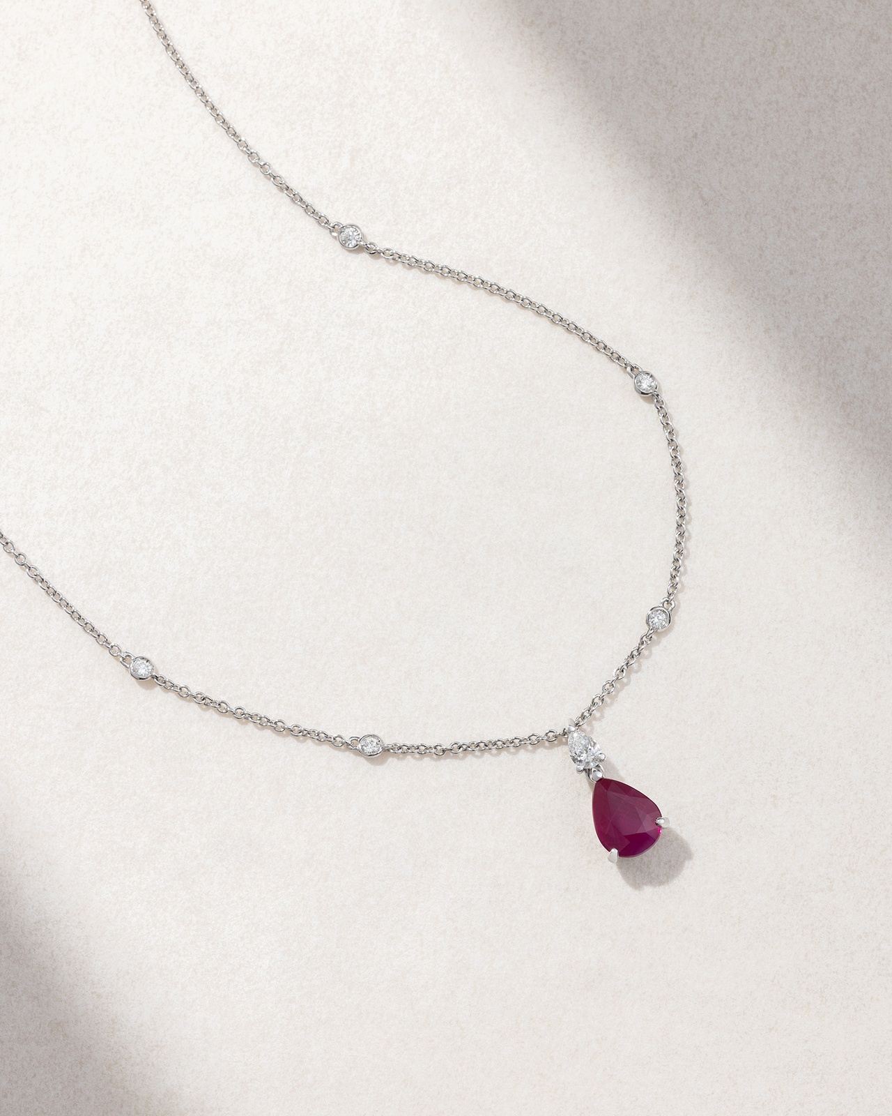 Κολιέ σε Λευκό Χρυσό Κ18 με Μπριγιάν, Ρουμπίνι Πουάρ και Διαμάντι Πουάρ