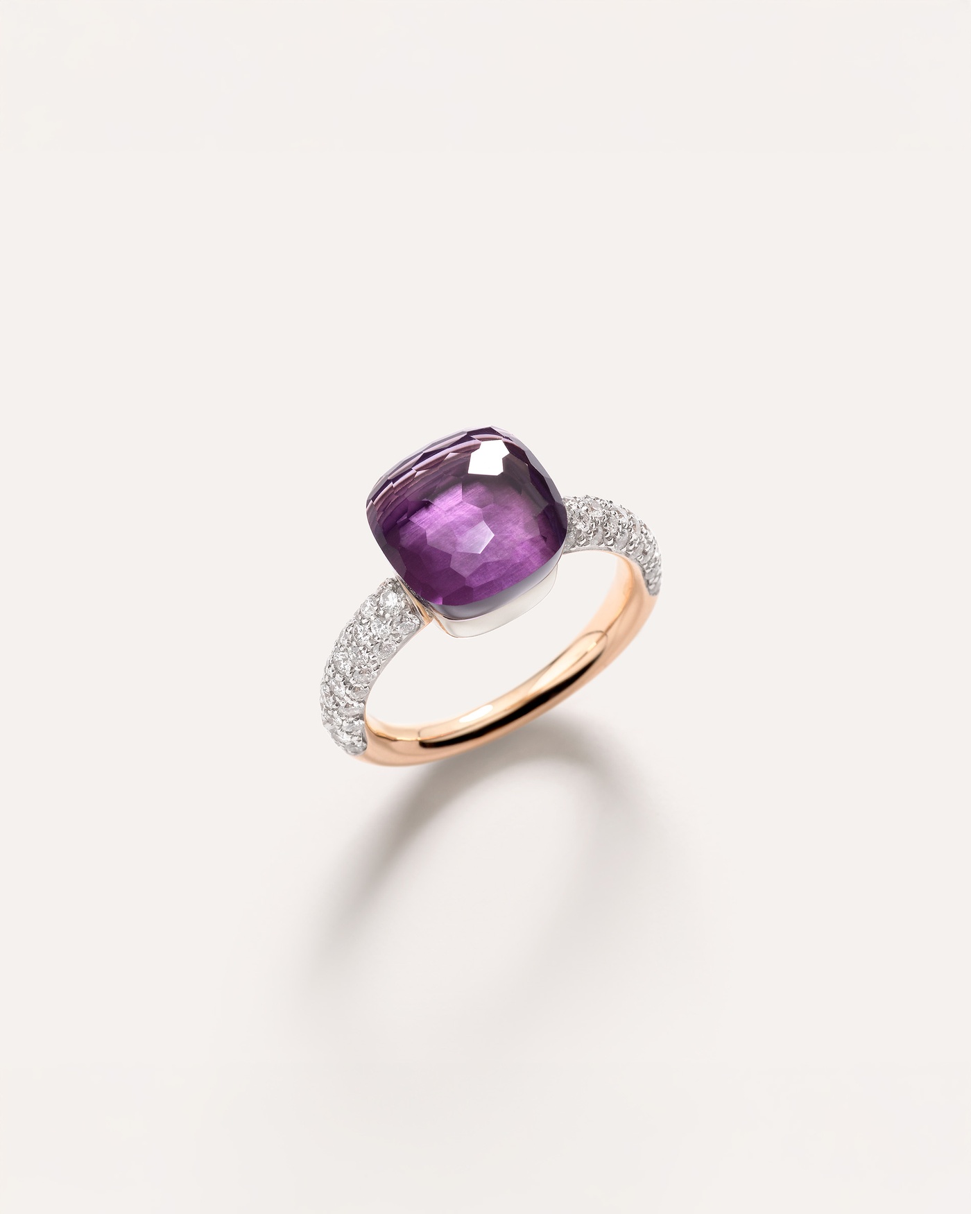 Δαχτυλίδι Nudo Classic σε ροζ χρυσό και λευκόχρυσο 18Κ με αμέθυστο και λευκά διαμάντια