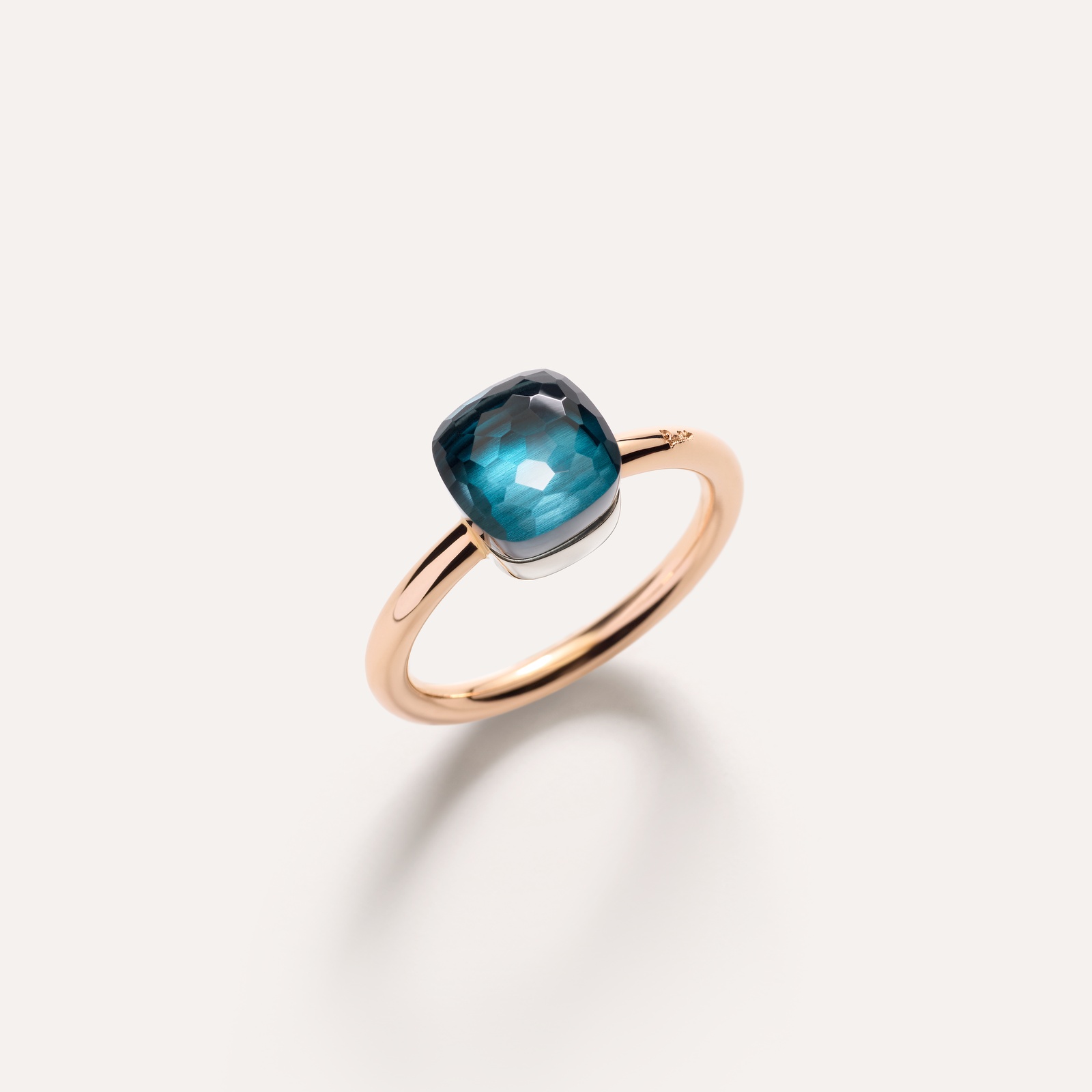Δαχτυλίδι Petit Nudo σε Ροζ χρυσό και λευκόχρυσο Κ18 με London Μπλε τοπάζ