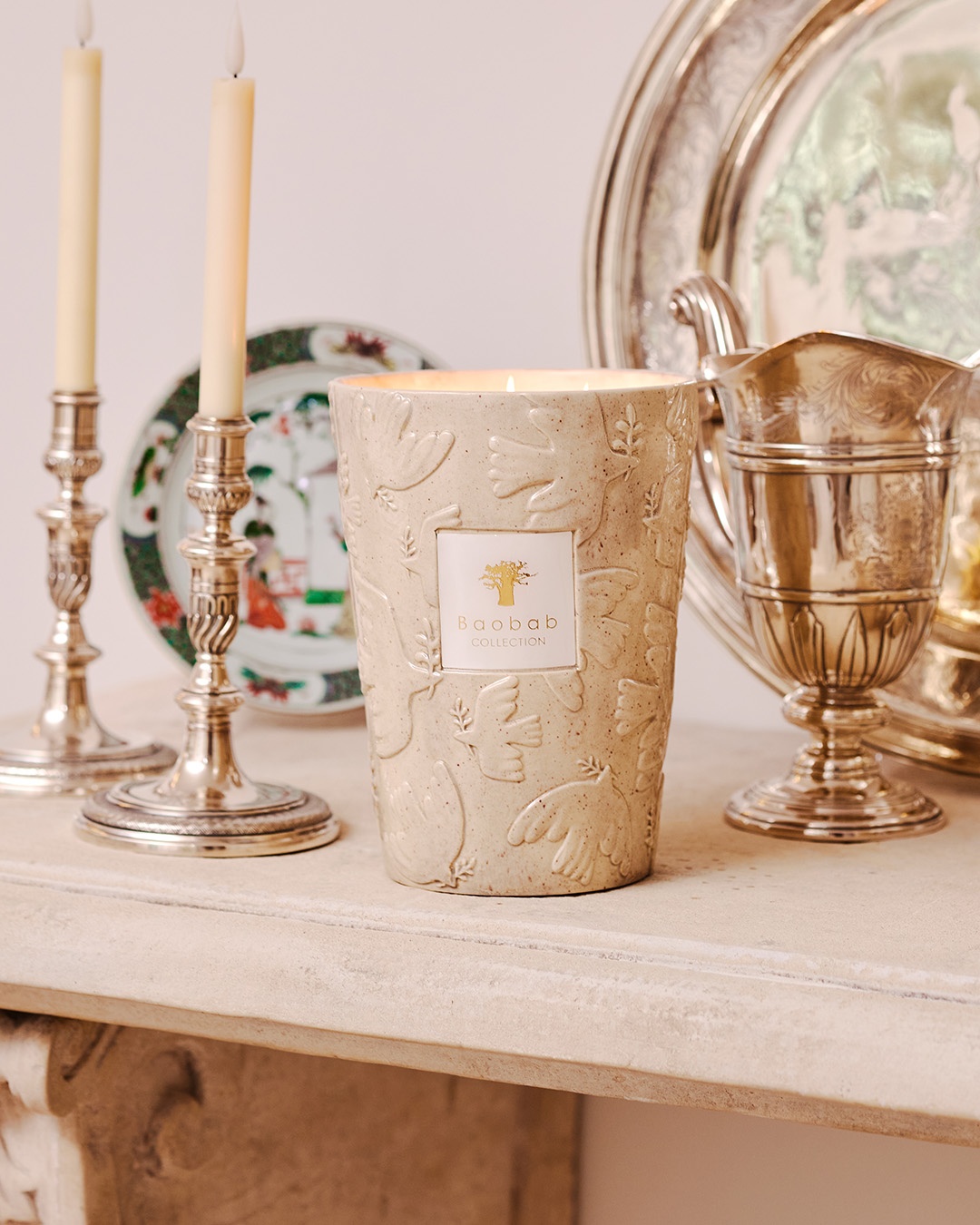 Κατασκευασμένο από λεπτεπίλεπτη ιβουάρ κεραμική από Πορτογάλους τεχνίτες, το αρωματικό κερί Paloma αναδεικνύει την αίσθηση της απαλότητας στην αφή, με το φυσικό σμάλτο να εναλλάσσεται ανάμεσα σε γυαλιστερές και ματ επιφάνειες, δημιουργώντας ένα διακριτικό παιχνίδι ανάμεσα στο φως και τον ακατέργαστο πηλό.