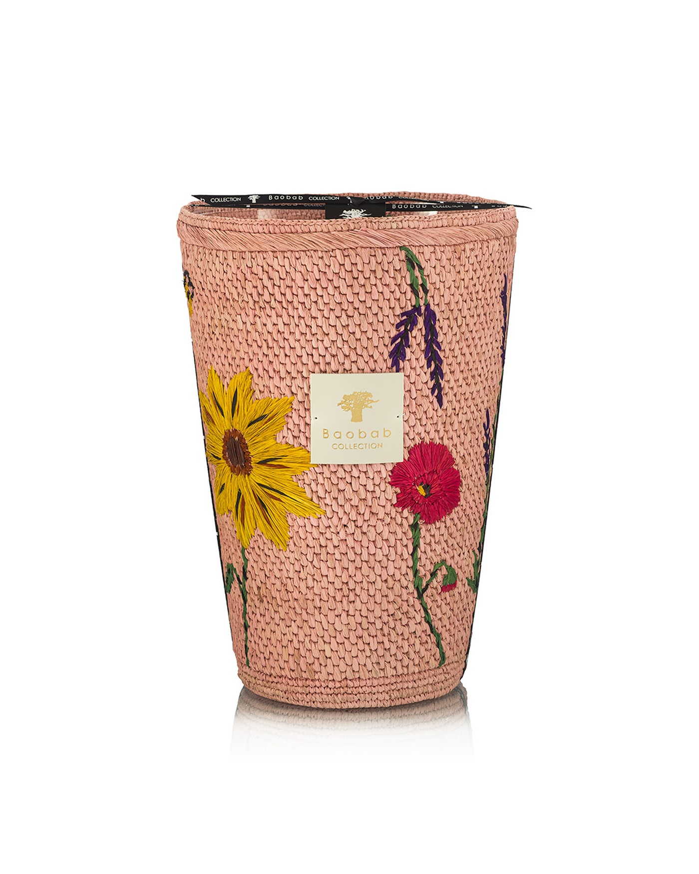 Η λεπτή ροζ ραφία αναδεικνύει την εκλεπτυσμένη χειροποίητη λουλουδένια κεντητική τέχνη της τοπικής συνεταιριστικής κοινότητας.