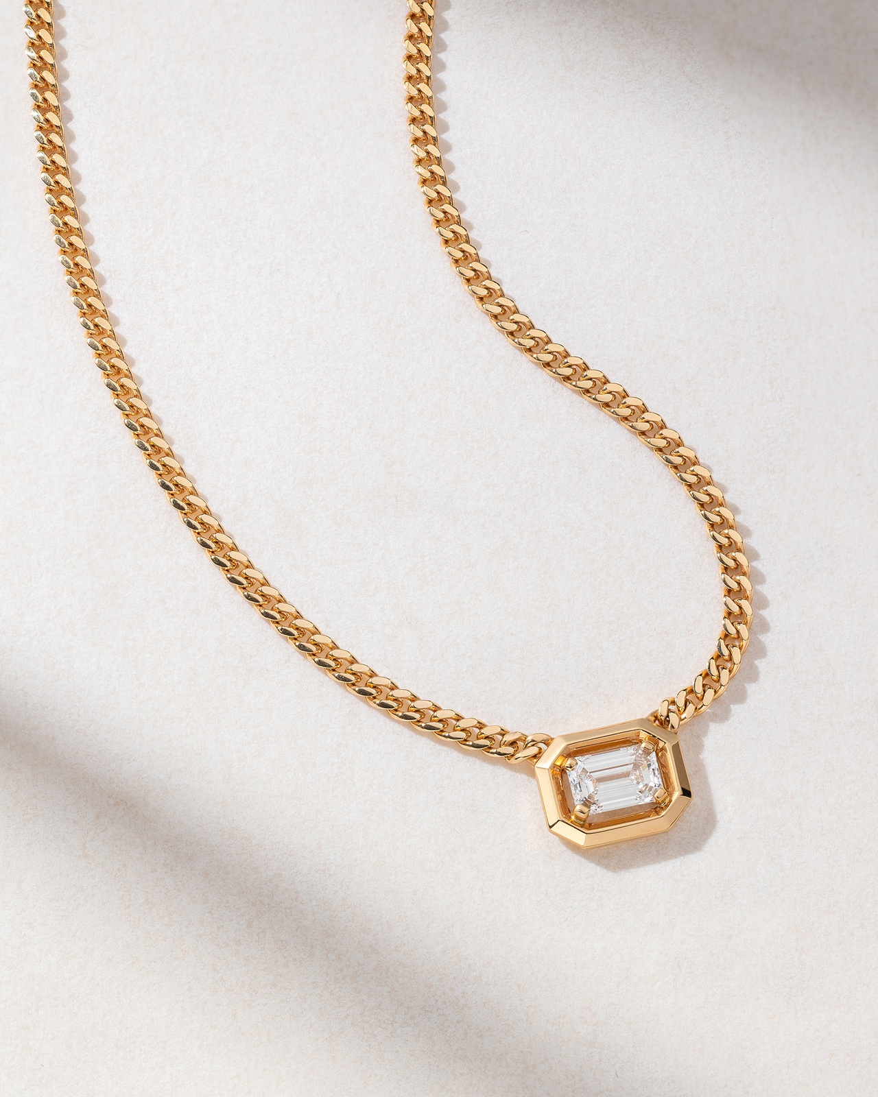 Daring and feminine, this Crivelli necklace showcases an exquisite D color emerald diamond strung on a polished gourmet chain. Wear it solo for greatest impact.