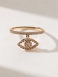 An elegant ring crafted from 18K rose gold and dusted with shiny brilliant diamonds, it features a floating lucky eye that reflects the light with your every move. Combine it with other dainty bands to complete all your casual chic looks.