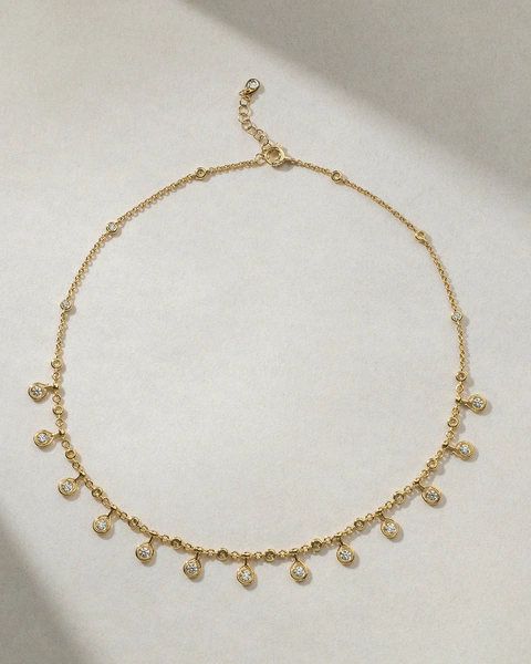 Strung with twinkling brilliant diamonds along its dainty white gold chain, this Damaso necklace will look beautiful alone or layered with other chains for a playful styling. Wear it with a tank and jeans for a stroll in the city.
