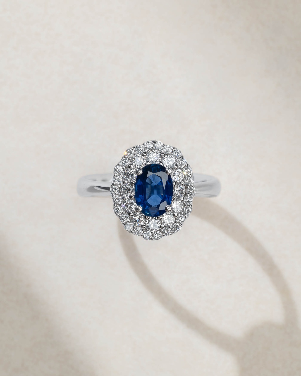 18K White Gold Ring with Oval Sapphire and Diamonds