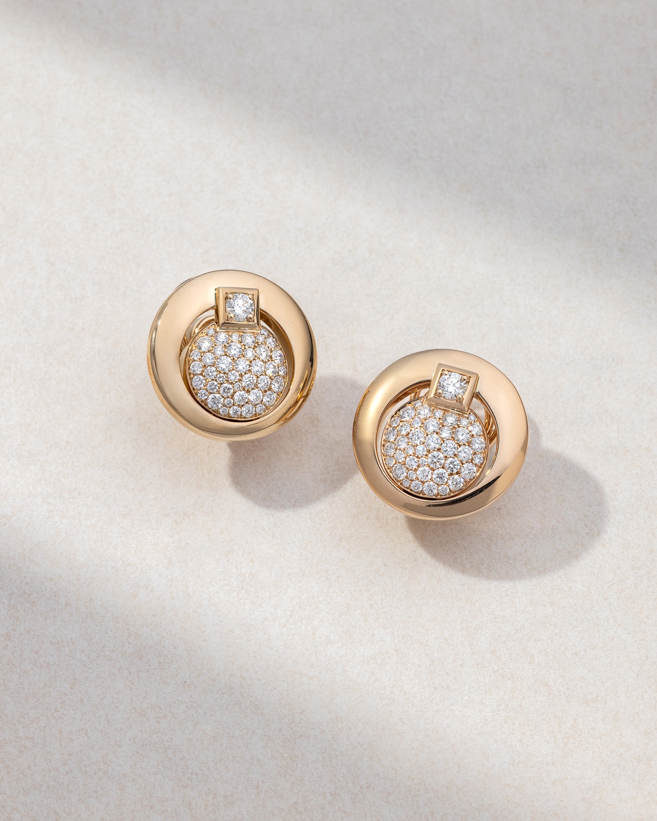 Radiant earrings in 18K rose gold with brilliant cut diamonds. Their elegant and timeless design highlights the natural sparkle of the diamonds, offering a subtle yet dazzling aesthetic. Dare to wear them for both formal and casual occasions, pairing them with rose gold jewelry for perfect harmony.