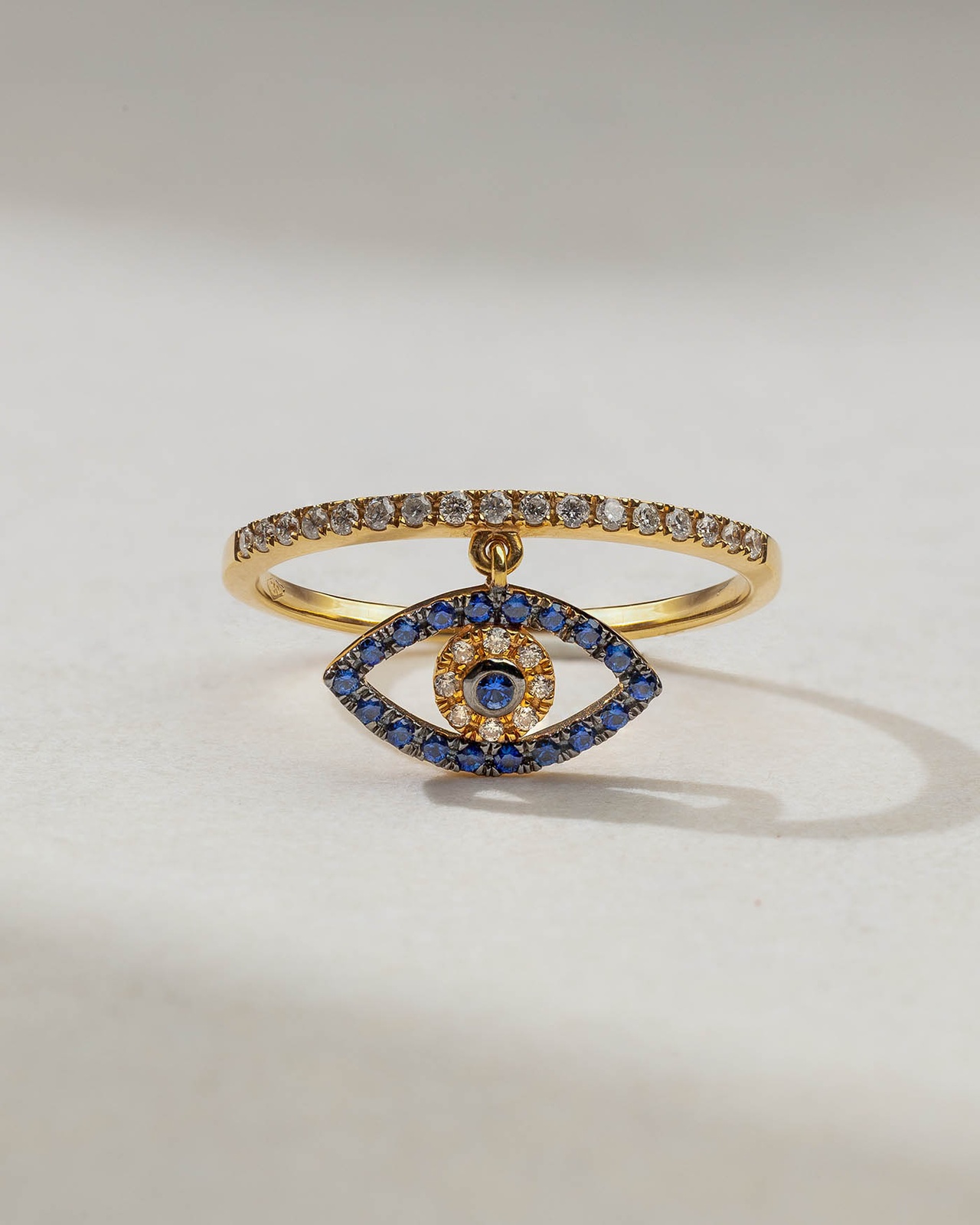 Evil Eye 18K Rose Gold Ring with Blue Sapphires and Diamonds