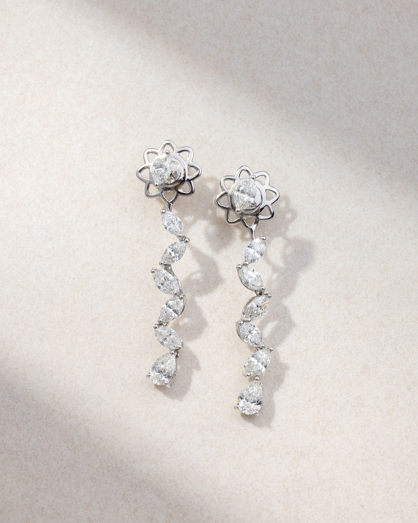 Long Earrings in 18K White Gold with Pear and Navette-Cut Diamonds