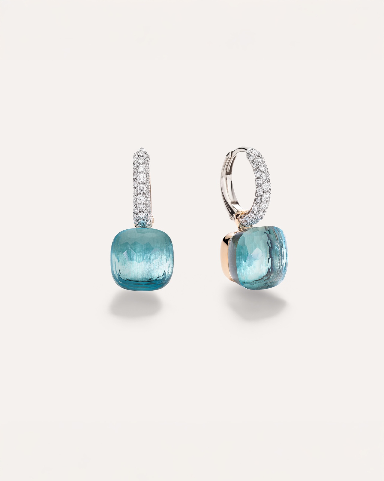 Nudo Earrings in 18k White and Rose gold with 2 sky blue topazes and 56 white diamonds.
