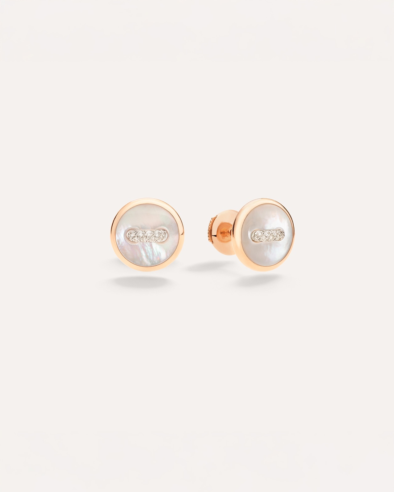 Pom Pom Dot Earrings in 18k rose gold with 2 white mother-of-pearls and 20 white diamonds