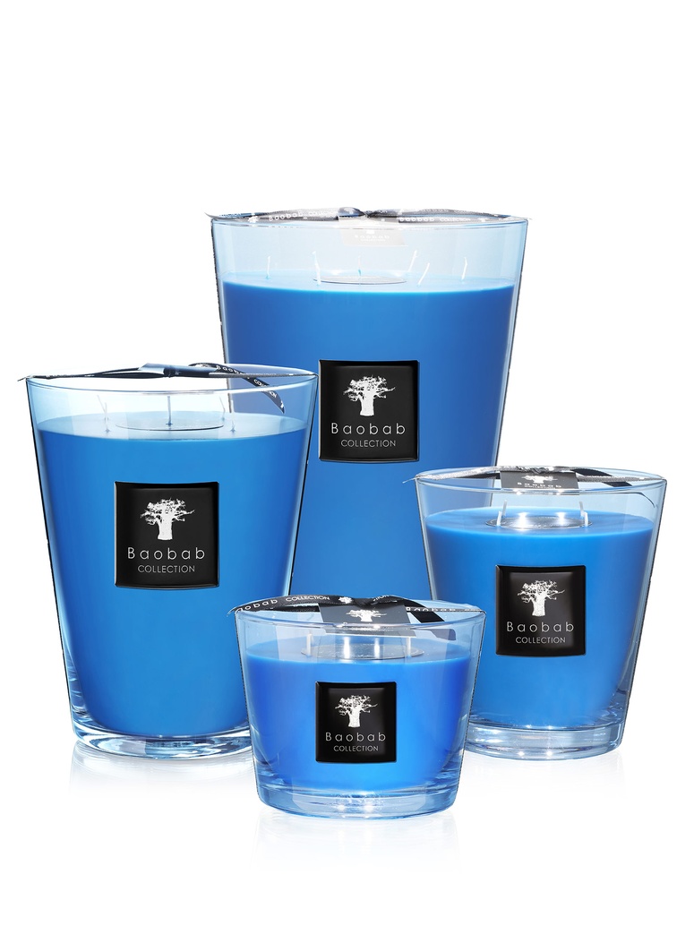 Poured in an iridescent blue green glass, the Nosy Iranja scented candle, through its color and perfume, is an invitation to travel to the blue waters of the Indian Ocean, on the banks of the marvelous island from which it draws its name.