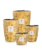 The Garrigue scented candle is made from hand-crafted ceramic with a debossed pattern of branches and leaves. A matte, mottled yellow glaze covers the ceramic, contrasted by a glossy celadon green glaze on the inside. The colors of this candle are both subtle and decorative, to be placed in any interior like an organic sculpture.