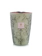 The materials contrast and complement each other in this fragrant, sculptural object, making it an unusual and elegant decoration for summer homes. The outside of the ceramic is dotted with plant motifs, branches and leaves, recalling the name of the candle, which describes Mediterranean vegetation made up of shrubs.