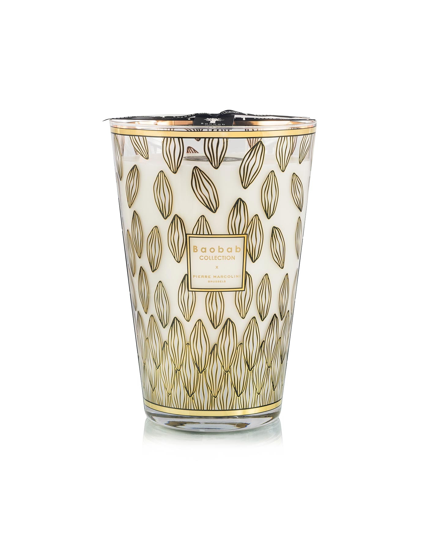 The Pérou scented candle pays tribute, through its screen-printed design, to criollo beans harvested exclusively in Peru, recognizable by their unique whiteness that gives Pérou dark chocolate the appearance of milk chocolate. A rain of white and gold beans is scattered across the glass, creating a highly decorative and precious effect. In its whiteness, this pattern echoes the very structure of these exceptional beans.The fragrance is the ambassador of Peruvian flavors, but also the guardian of an ecosystem where jasmine flourishes alongside cocoa trees. The cold throw evokes the freshness of lime, a key element in Peruvian cuisine and its famous ceviche. When lit, the fragrance retains all its freshness while revealing the dry character of vetiver wood, which further enhances this sensation. Jasmine’s floral identity appears only in glimpses, creating a very green, aromatic effect.