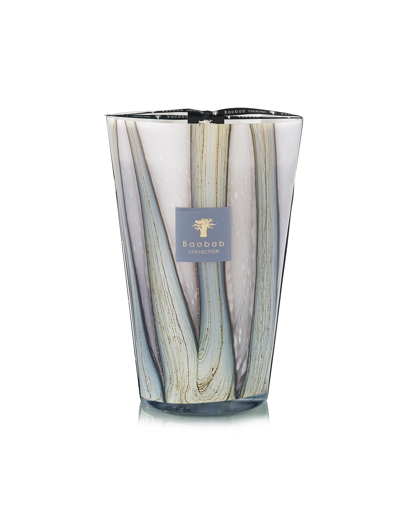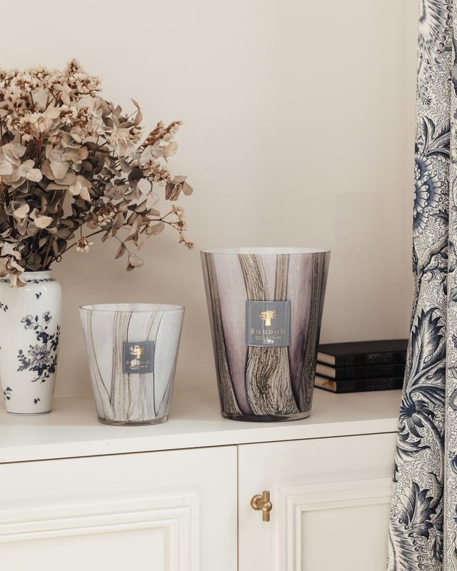 The glass of the Brocéliande scented candle, with its vertical lines reminiscent of woods, oscillates subtly between gray and lavender, revealing ample refinement.