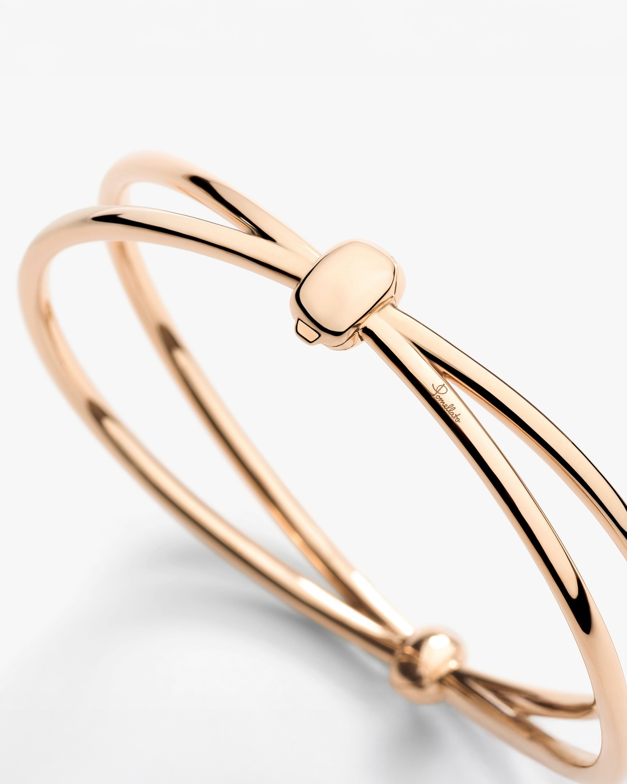 Deeply symbolic, the Pomellato Together collection captures the connections that bind us together, celebrating love in its many forms. The Pomellato Together jewels feature two ellipses held together by a link, symbolizing the power of unity and the strength of togertherness. This rose gold bracelet is the perfect Milanese tribute to love.